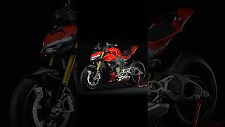 The natural evolution of the family is a bike that pushes the concepts of the "Fight Formula" even further, the key elements of which are the Panigale V4 stripped of the fairings, high and wide handlebars, 392 lb weight, 208 hp Desmosedici Stradale engine, biplane wings and latest generation electronic package.